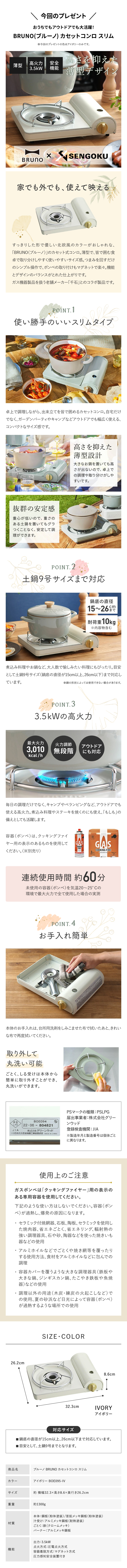 参加無料!アプリ限定 プレゼントキャンペーン | おうちでもアウトドアでも大活躍!BRUNO カセットコンロ スリム アプリから応募した方の中から抽選で2名様にプレゼント! 応募期間 2026年2月8日(日)まで