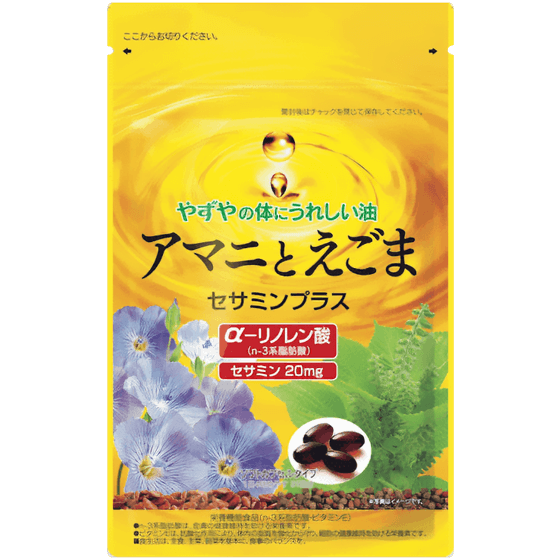 いくつになっても、元気で美しい毎日を過ごしたいあなたにオススメしたいのが、からだに必要な必須脂肪酸「α-リノレン酸」がギュッと詰まった「アマニとえごま セサミンプラス」。