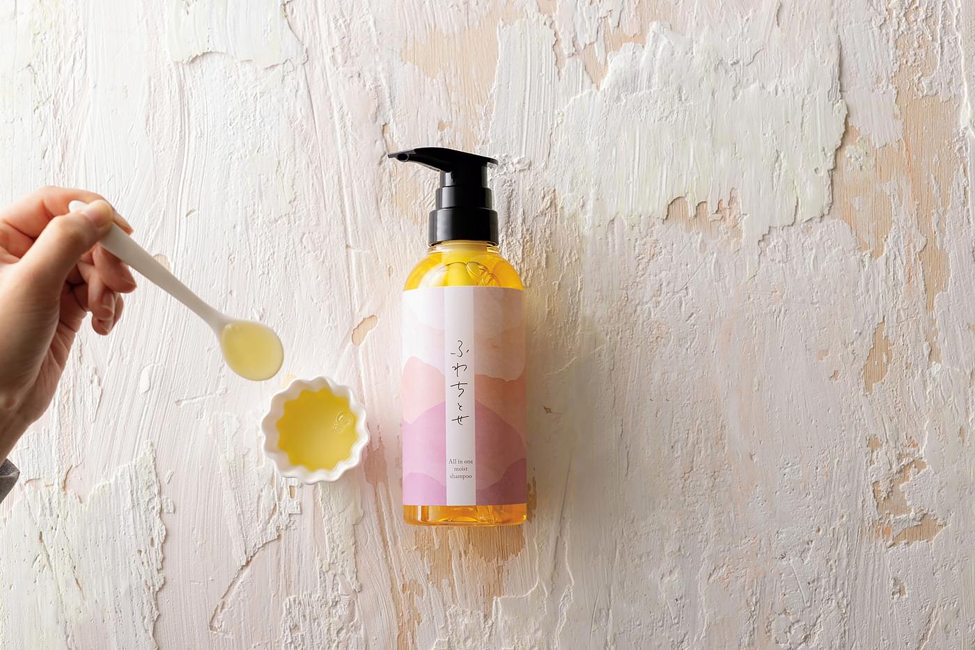 『ふわちとせ』は、洗うだけで頭皮を整え、髪にうるおいを与えるオールインワン美容液シャンプーです。トリートメント不要。それでも、思わず触れたくなる仕上がりへ。